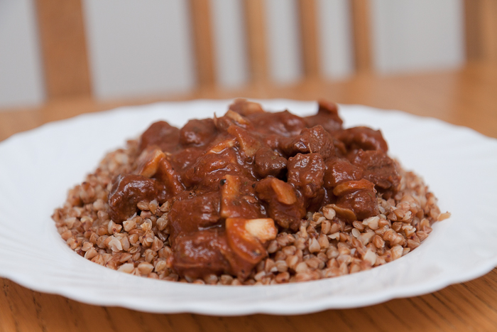 duszona wołowina z pieczarkami